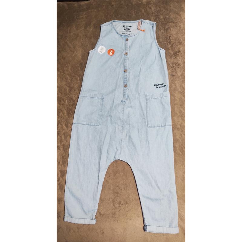 Новый, очень стильный джинсовый комбинезон. Низка мотня. Был комплект, переносили телькие футболку.