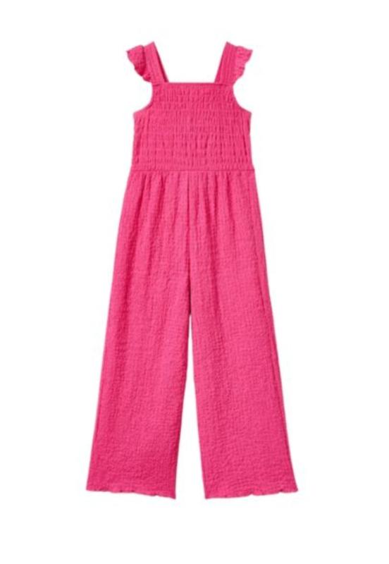 яскравий легенький літній комбінезон з текстурованої тканини, яка гарно тягнеться. колір вживу трішки світліший 13/14 років (164см): довж 123, крок 67, від верху до поясу (на резинці) 34, пояс 33, ПОГ 32 (на резинці ззаду), від матері до верху брительок 65