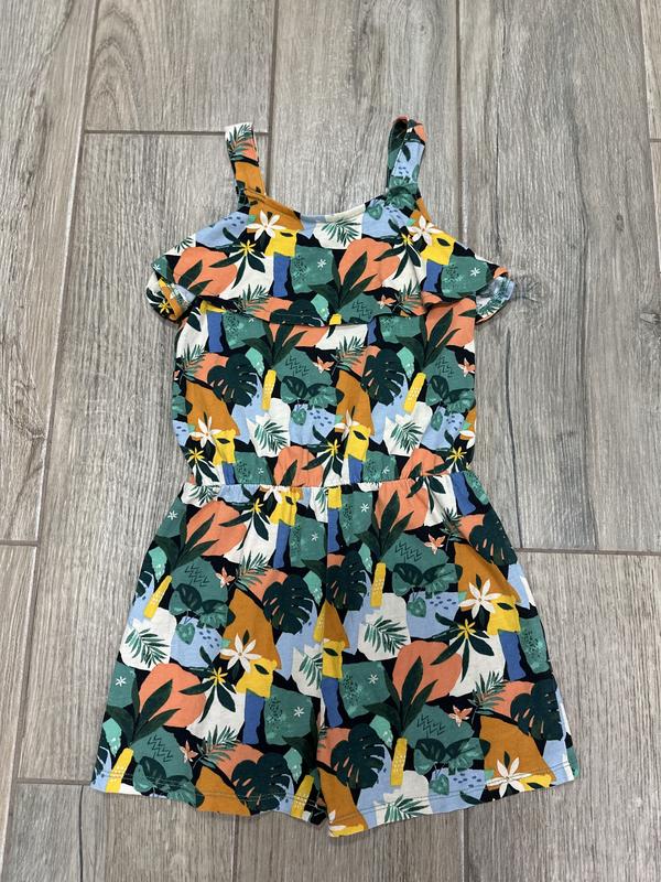Летний комбинезон на девочку от Tu, размер 7 лет (122см), состояние нового, красивый яркий принт, натуральный материал, легкий и удобный