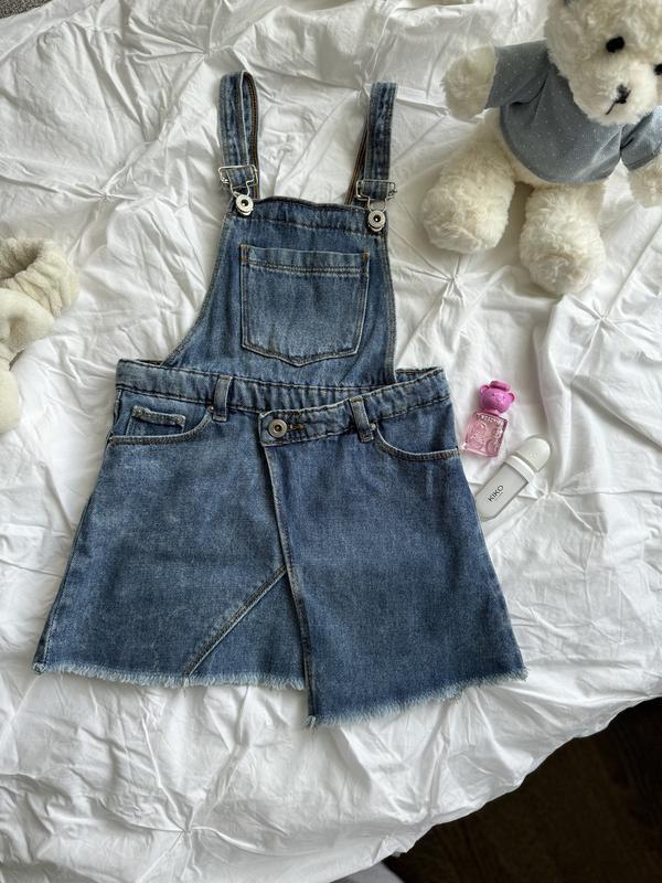 Джинсовый сарафан с регулируемыми бретелями. Возраст 8 лет, 128 см. Стан идеален.