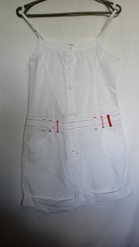 красивый, белый, нарядный, длина по боковому шву от подмышки до низу51, пог42,талия полуобхват41,бедрапопа 51-52,ширина штанины27, бретели регулируются