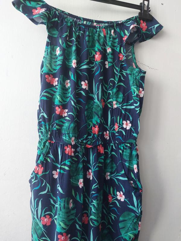 Літній комбінезон на дівчинку. Довжина повністю 132 см. Довжина штанини від пояса 94 см, крок 66 см. По грудях 43 см, по поясу 30 см, пояс на резинці.По стегнах 49 см. Віскоза.