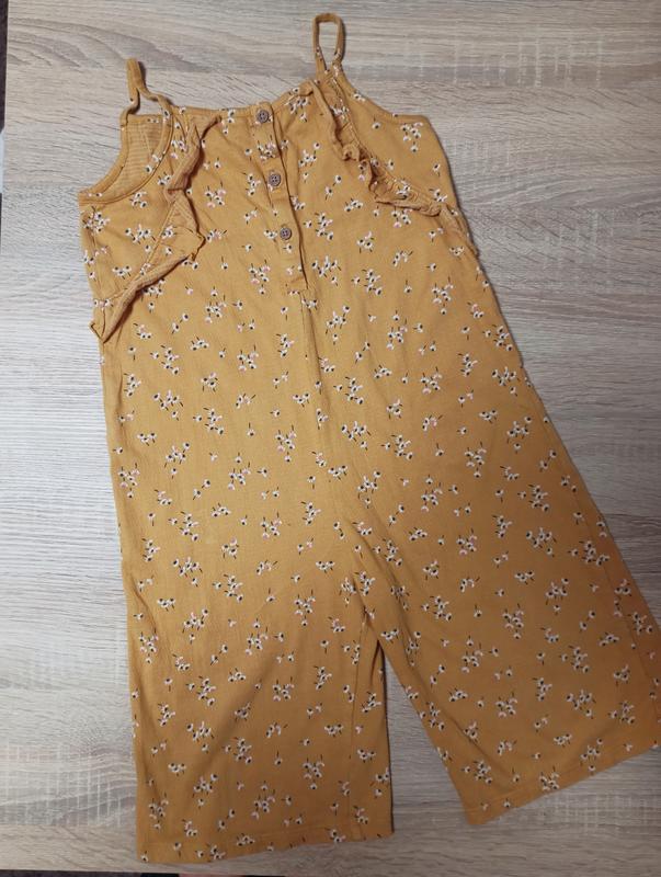 Очень стильный ромпер для девочки 4-5.Горчичного цвета с принтом ромашки.🔥Тоненькими брительками та гудзичками спереду.