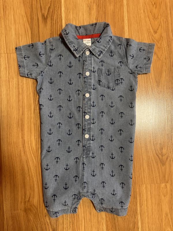 Стан нового , просто неймовірно гарний Вказано 24 міс, але нам був завеликий Тканина натуральна, легка, типу шамбре Заміри : довжина до кнопок 47 Ширина під пахвами 29,5