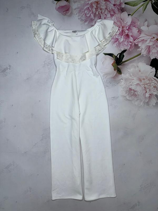 Беленький комбинезон с гипюрчиком Состояние как нового 🏷️River Island 9-10 лет/140 Длина 119(65). Шаг 60. ПОГ 36