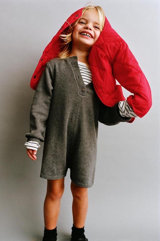 Цена 1480 Трикотажный комбинезон с круглой горловиной и длинными рукавами. Застежка на пуговицах на кокетке. Энергичный серый <unk> 9598/559