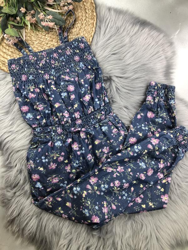 ‼️ Минимальная сумма заказа 70 грн. Если Вы желаете приобрести больше одной вещи, пожалуйста, оформляйте заказ через кнопку «Добавить в корзину» Новый ромпер 6-7 р., без бумажной бирки. Тоненький летний джинс. Длина с манжетом 105 см. Ширина по талии 25 см, тянется до 34 см. Длина топа до резинки по талии 33 см. Ширина резинки по талії 4,5 см. Посадка спереди с поясом - резинкой 21,5 см. сзади с поясом -резинкой 28,5 см. Шаговый шов с манжетом - резинкой 50 см.