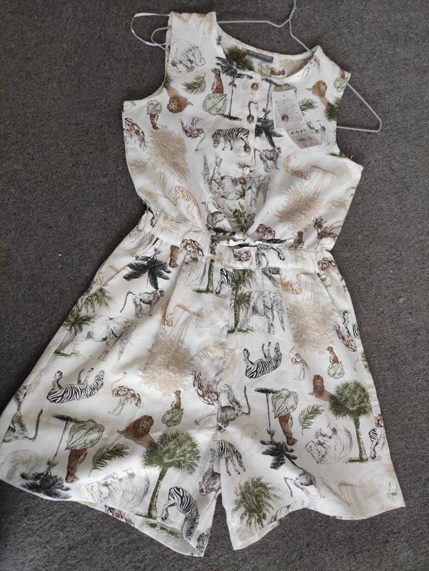 Ромпер в стиле сафари на рост 152, ткань очень приятная 30% лен 29% вискоза 2% коттон 39 полиэстр. Новенький со всеми бумажными бирками.