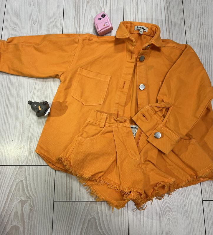 Стильный яркий костюм джинсовая рубашка удлиненная Да юбка шорты Фирмы KTN Весь комплект стоил около 2700-300 Рост 110