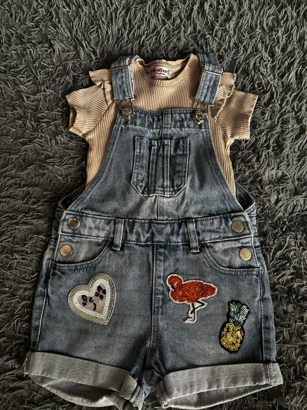 Джинсовий комбінезон і футболочка в рубчик, на вік 3-4 років. Продам комплект