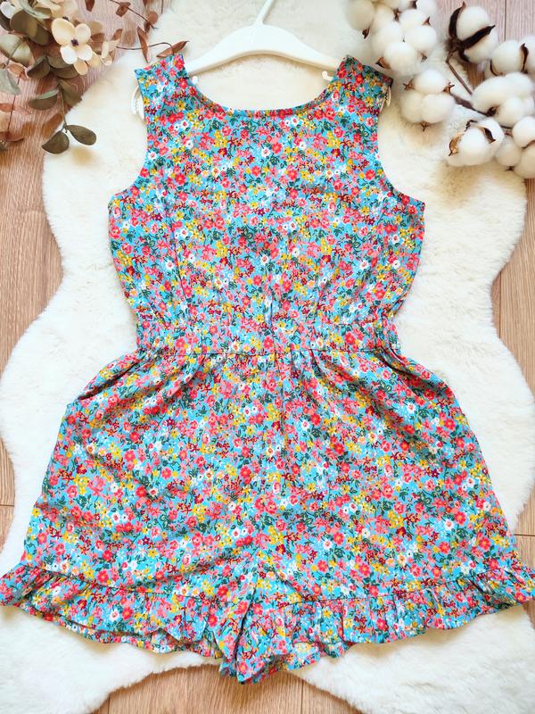Яркий летний комбинезон/ромпер от бренда Next для девочки в возрасте 7 лет, ростом 122 см замеры: Длина 62 - 65,5 см Плечи 28,5 см Ширина под рукавами 34 см Пояс 27,5 см, на резинке, тянется