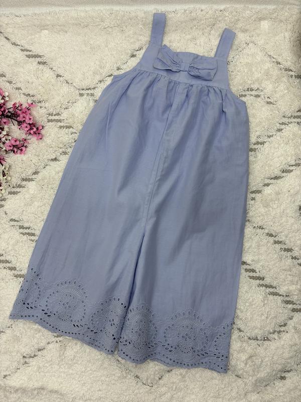 Стильный хлопковый комбинезон с прошвой на 2-3 рочки. Длина общая 68, к паху 49.