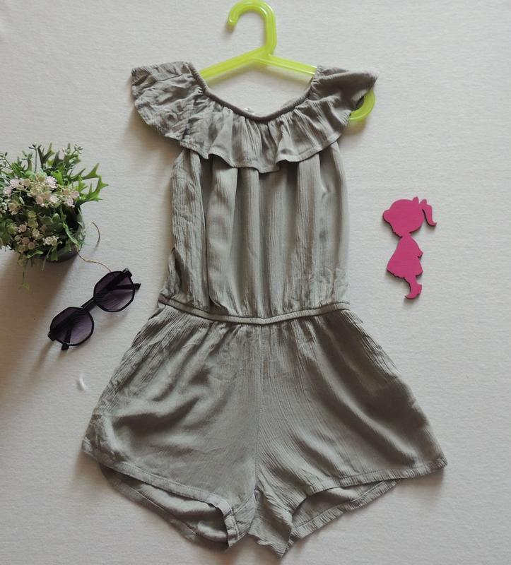 Ромпер нежно фисташкового цвета бренд h&m 8-9 рочков весь эластичная тянется будет больше не растягивая 42 до 51 в талии вставленная резинка 28 45 бедра по крайным точкам спокойном состоянии 52 но тягуную до 62 отдельно шортики в минимальную сбоку около 243.5 состояние отличное