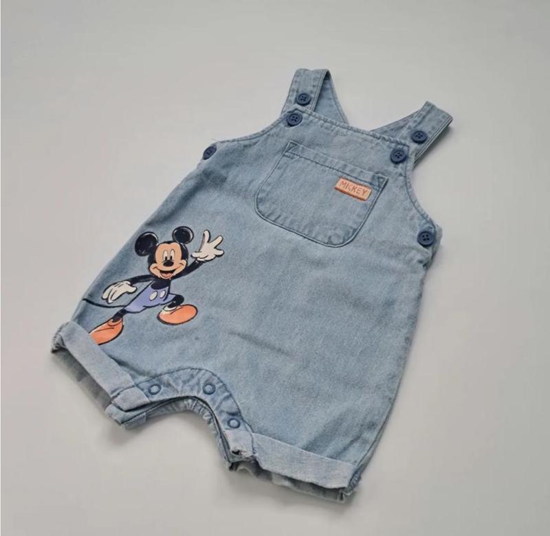 Дуже гарний комбінезон для маляти. Верх і бока на гудзиках, лямки регулюються двома ґудзиками, низ на міцних кнопочках. Малюнок не потрісканий, наче прорезинений. Стан нового. Розмір від 0-1 ,1-3