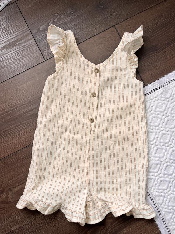 Літній комбінезон пісочник для дівчинки в пастельних бежевий персиковий в смужку з рюшами...