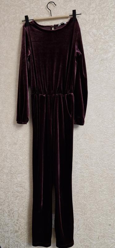 Очень красивый комбинезон для девочки. Цвет бордовый, ткань вельвет. Выглядит очень эффектно, празднично! Размер 134-140, на 8-9-10 лет.