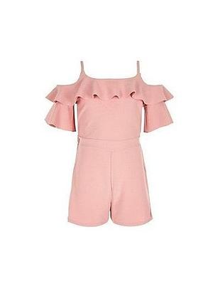 Ромпер/комбинезон River Island на 11-12 лет, рост 146-152 см с открытыми плечами Состав: 97% полиэстер, 3% эластан Замеры: общая длина - 70 см, длина до паха - 60 см, полу охват груди - 41 см, полу охват талии - 34 см (на резинке), полу охват бедер - 51 см, ширина калоші - 32 см.