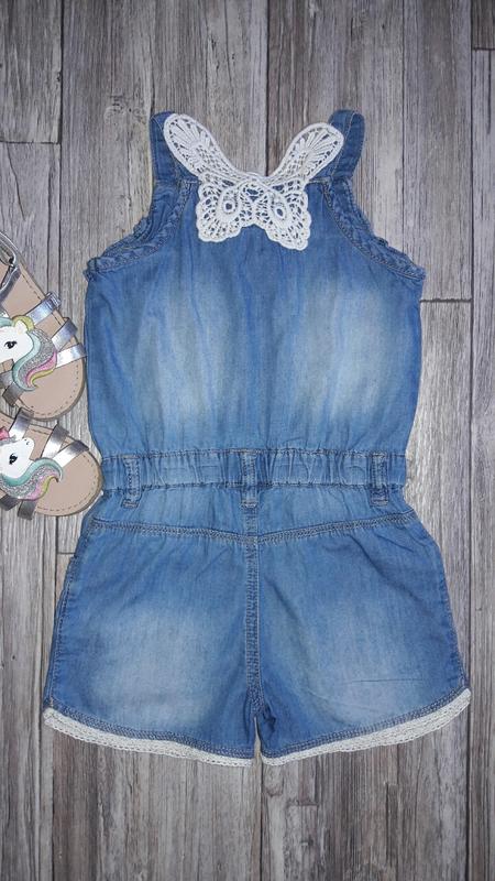 Красивый джинсовый ромп с кружевной спинкой... Длина по боковому шву 50 ПОГ 29-29.5 ПОТ 25-30 ПОБ 31-32