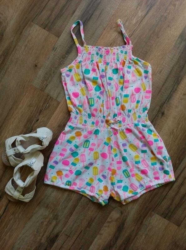 Красивый яркий ромпер по бирке на 6-7 лет но смотрите замеры ( длина с брительками 51см без бритель 43см, длина шорт 19см)