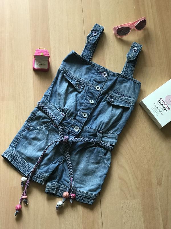 Стильный, модный джинсовый ромпер для юных красавиц Можно носить как и с пояском так и без Регулируемые бретели Италия ПОТ 28,5 см Длинна без бретелей 42 см