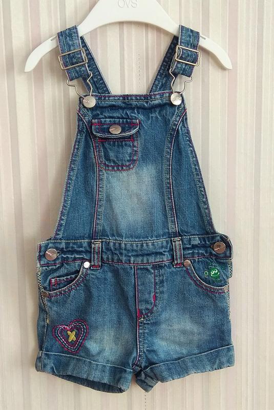 Красивый джинсовый комбинезон с шортами Marks&Spencer в размере 1.5-2 года. Состояние нормальное, ближе к отличному. Есть утяжка. Немного по\тертые пуговицы и нюанс у кармана сзади (фото 7). 100% хлопок. Замеры: длина полная 50, пояс 27, бедра 30. При покупке трех товаров – укрпочта в подарок!