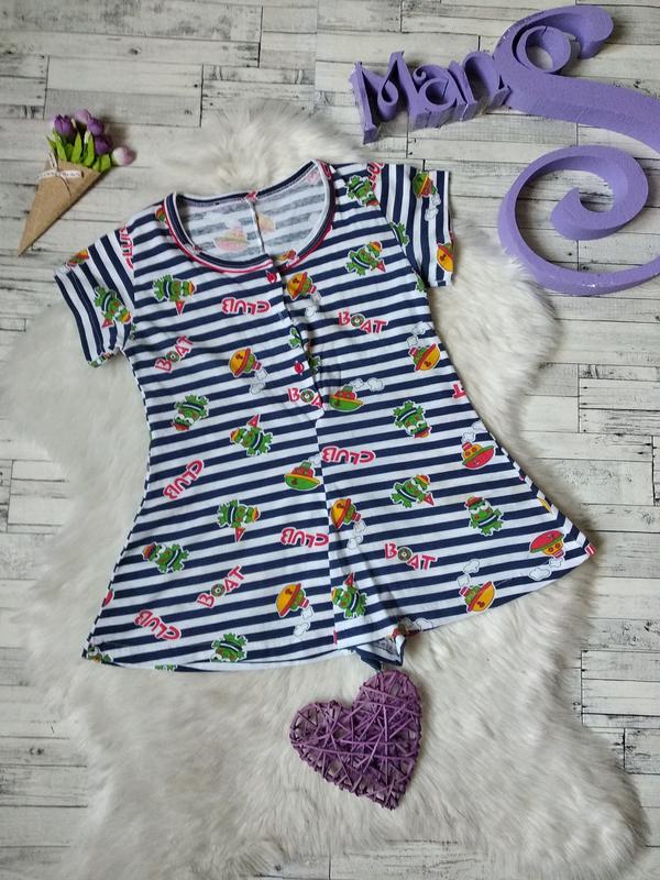 Летний ромпер шорты на девочку с рисунком в хорошем состоянии,есть пятна еле видно Размер 5 лет,рост 110 см Замеры: длина 53 см рукав 10 см плечи 30 см ПОГ 35 см ПОТ 35 см ПОБ 50 см цвет разный,в полоску состав 50% хлопок,50% полиэстер