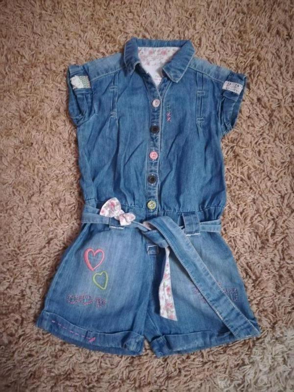 Джинсовый ромпер Next на девочку в отличном состоянии, возраст 2-3 года, рост 92-98 см. Замеры: длина 56 см, длина от плеча до талии 31 см, ширина в талии 30 см, под мышками 31 см, плечи 30 см.