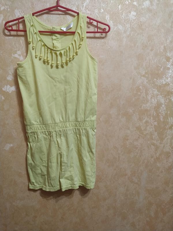 Комбинезон хлопковый с шортиками, желтого цвета, украшенный на воротнике бахромой с бусинами. В связи с условиями продажи на Шафе (15% от стоимости, но не менее 10 грн), вещи с маленькой стоимостью продаются при условии приобретения на общую сумму от 70 грн