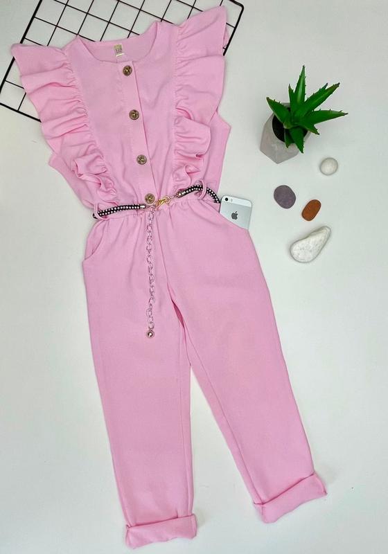 🎈Дуже красивий комбез тканина жатка по переду планка на гудзиках 🎈в талії під гумку з кишенями, пояс-прикраса у комплекті РЕКОМЕНДУЮ!!! розмір/🎈довжина/пог/🎈дл.від плеча до талії/🎈дл.від талії до низу/крок/побіди 128/🎈102/34/🎈32/🎈68/54/35-1шт 134/🎈110/37/🎈33/🎈73/59/38-1шт 146/🎈119/39/🎈34/🎈80/65/41-1шт 158/🎈132/41/🎈38/🎈91/71/42-1шт +-2см
