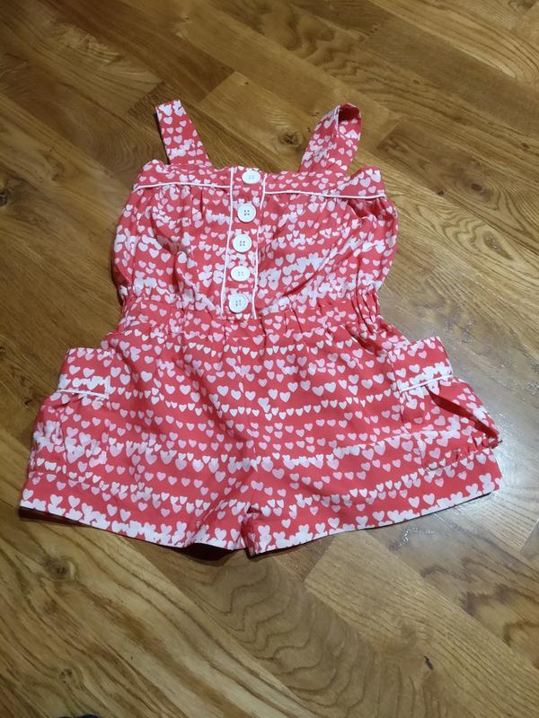 Літній яскравий дитячий комбінезон шорти.З принтом сердечка,спереді великі гудзики.