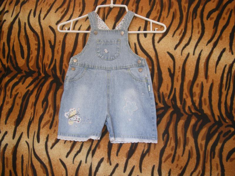 Комби-бодик для девочки джинсовый,фирменный,натуральный,три карманчика впереди,два карманчика сзади,застегивается по бокам на кнопки-пуговицы,длина-50см.,внизу белые кружева.