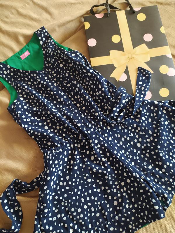 комбінезон-шорти next. Прикольні плямисті горох на темно-синьому фоні. обтачки зеленого трав'яного кольору. З кишенями, є пасок, застібка на ґудзики.