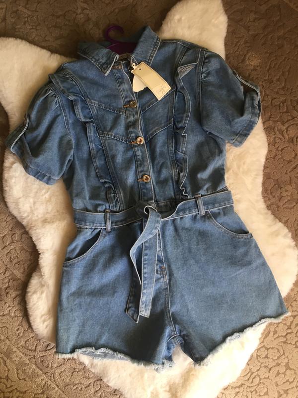 Класний джинсовий комбінезон Fiona&Co Заміри на фото (потрібні додаткові-пишіть) В поясі резинка трохи тягнеться. На вік 12-13 років або дівчину розмір xs , s .
