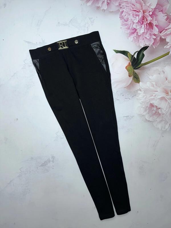 Черные трегенсы По бокам вставки из кожи На талии брендовый логотип в виде бляхи Состояние идеальное 🏷️River Island 11-12 лет/152 Длина 82. Шаг 61. ПОТ 31+