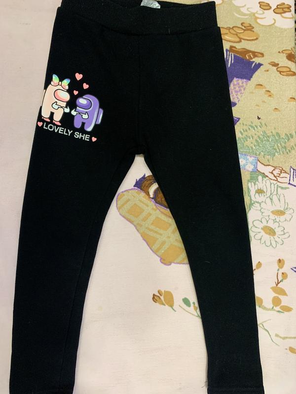 Брюки зауженные, утепленные, 2 шт (одные с рисунком, другие черные без рисунка)