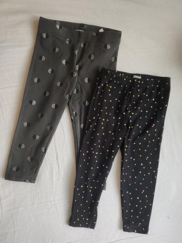 пара лосин в хорошем состоянии серые hm 92размер. черные smyk 86размер. размеры разные, но длина у них одинаковая, на фото есть замеры