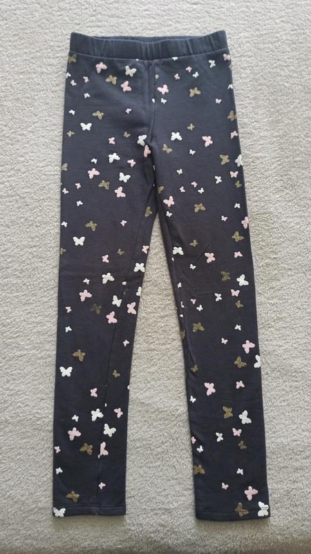 Лосини утеплені H&M, розмір 134, в дуже хорошому стані (нюанси видно на останньому фото). Заміри зроблені в спокійному стані, ще тягнуться: В поясі 26,5 см Довжина 75,5 см