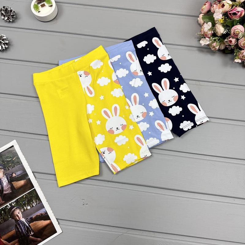 🌸Велосипедки Зайка. Резинка гарно тягнеться. Малюнок-накат. Тканина двунитка. Виробник Туреччина. Колір: жовтий, блакитний та темно синій 📐Заміри: 98 - довж. 33/напівобх. 23 104 - довж. 35/напівобх. 24 110 - довж. 39/напівобх. 25 116 - довж. 44/напівобх. 26 122 - довж. 47/напівобх. 27 128 - довж. 50/напівобх. 29 134 - довж. 53/напівобх. 29 140 - довж. 56/напівобх. 31 *Орієнтуйтесь відповідно замірам