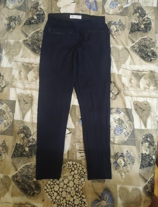 Лосіни для дівчинки, стан нових (майже не носила). Колір темно-синій. По внутрішній стороні вшиті фактурні поломки, в поперечний рубчик. Спереду імітація карманів на застібках-блискавках.