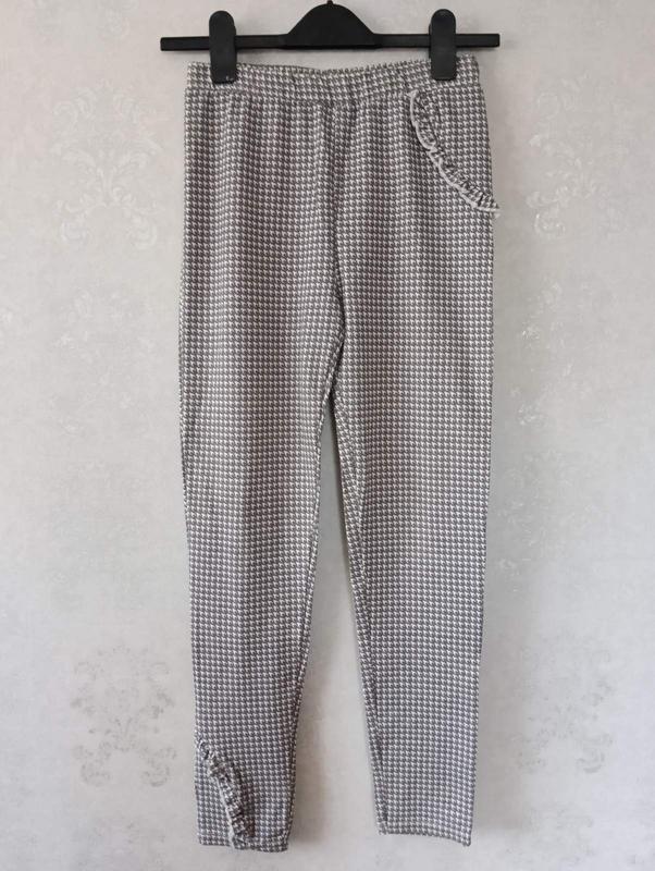 Розміри: напівобхват талії - 31, довжина - 88, вн. шов. - 64. На резинці, принт "гусина лапка", зліва хибна кишеня