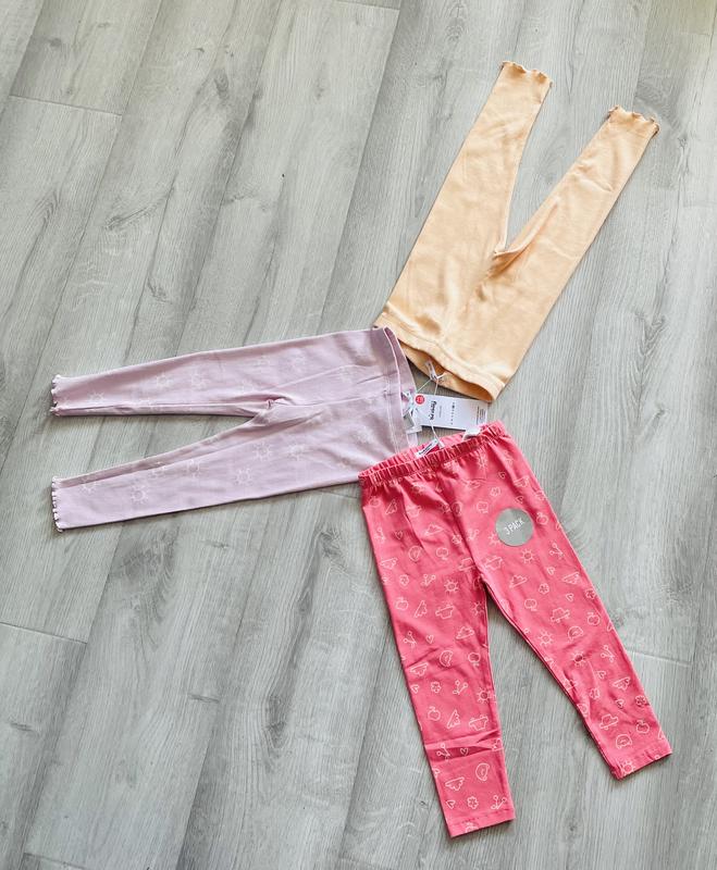 Набір лосинів дівчинці Розмір 92 Довжина 47-50 см Пояс 21-22 см Крок 29-31 см Світло-рожеві і жовті - довші Малинові -коротші Ціна за набір