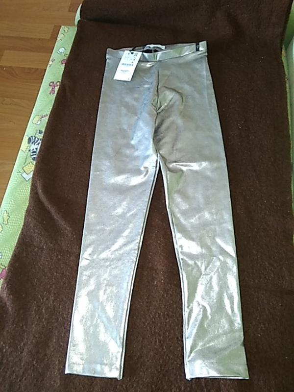 Новые лосины серебристые от Зара Длина 82-84см, крок 61см,пояс 29-30см