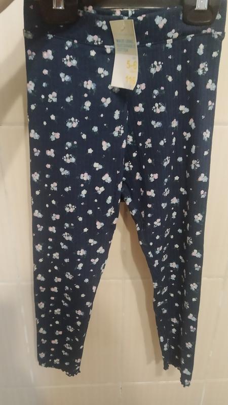Красивые лосинки в рубчик с принтом, качество хорошее.Новые.Замеры:пояс 23см,длина 60см,шаг 42см