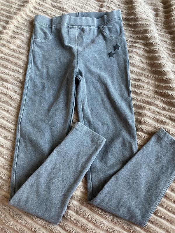 Джинсовые лосины на худи девочку. Идут ориентивно на 9-10 р. Замеры: Длина-80 см Внутренний шов-60 см Резинка в свободном состоянии-62 см Состояние очень хорошее.
