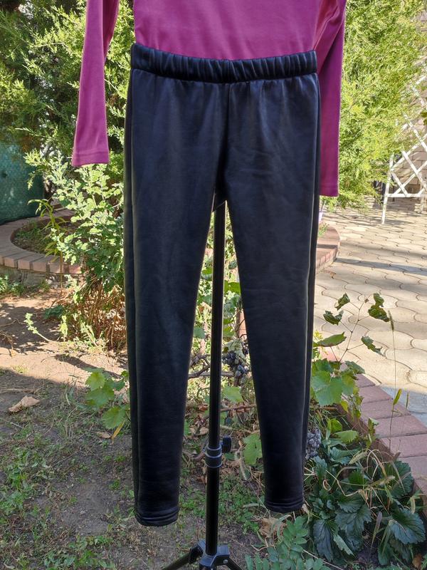 Лосины кожаные, теплые, тянутся, на худи девочку. Качество очень красивое, удобные, немного тянутся, поэтому ребенку комфортно. Состояние новой вещи. Гольф с фотодам в подарок. ткань рубчик, идеальное состояние. замеры: длина брюк 67см шаговой 50см