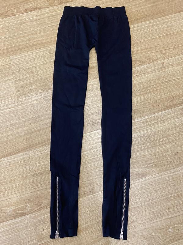 Леггинсы декорированы внизу молниями. Ширина пояса – 25 см. Общая длина – 85см.