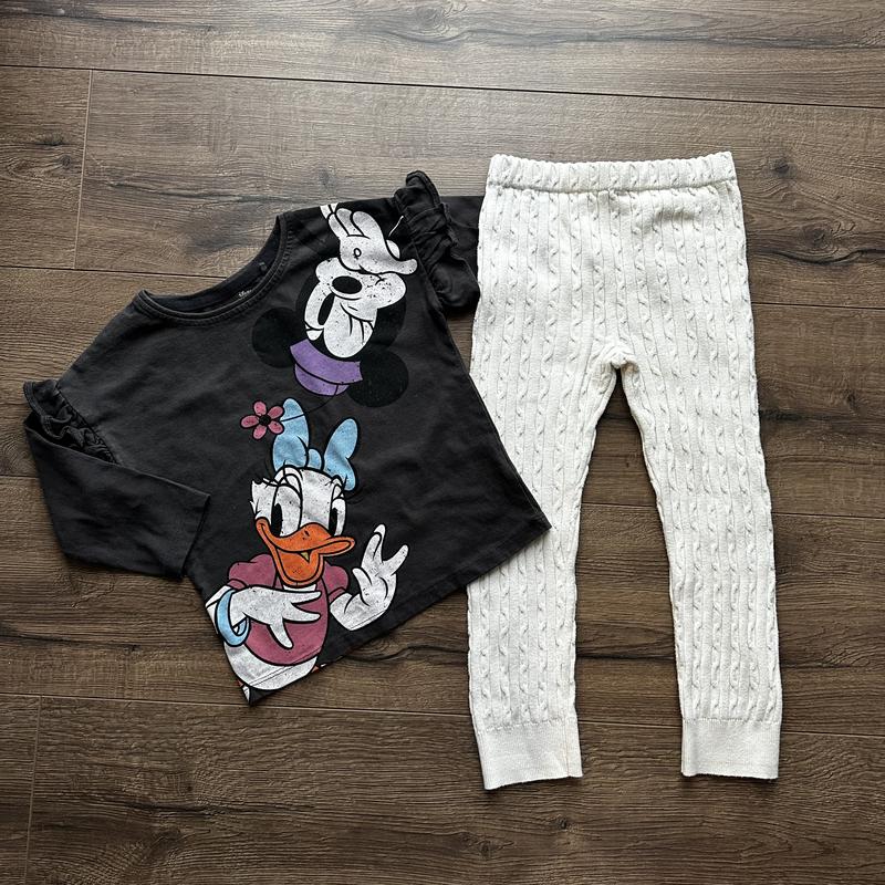 Классный набор для девочки на возраст 2-3 года. Верх длина 37,5 см, рукав от шеи 37 см. Лосины пояс 25 см, длина 57 см, шаг 41 см.