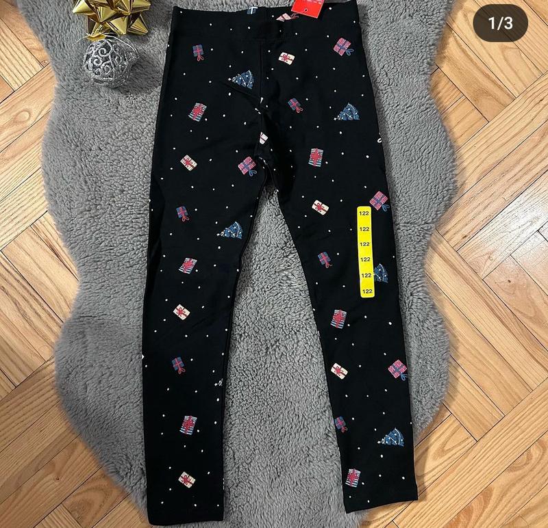 Новые теплые лосины черные с праздничным рисунком, есть размер 128 -длина 70см шаг 52 см. Цена 245 грн