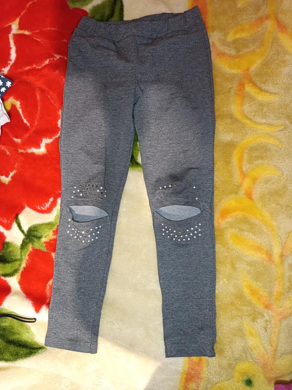 лосіни з відкритими колінами. прикраси частково повідпадали (фото). довжина 72 ширина 32 крок 53