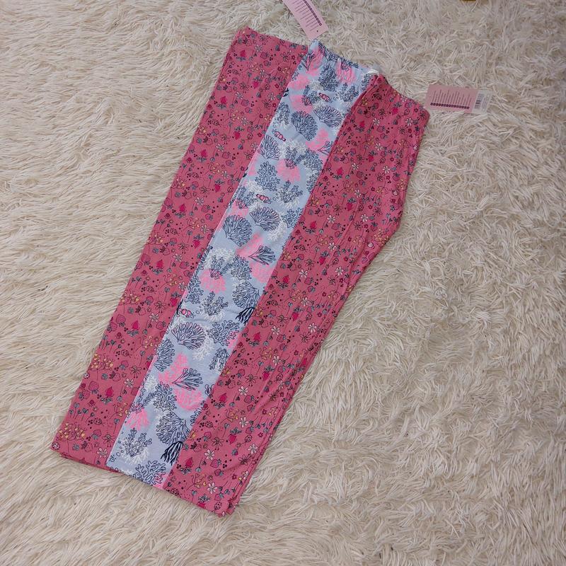 лосинки pepco на рост 128 коралл с клубничками длина 70 см, шаг 52 см, полуталии 25 см голубые с кораллами длина 72см, шаг 54 см, п.талия 24 см